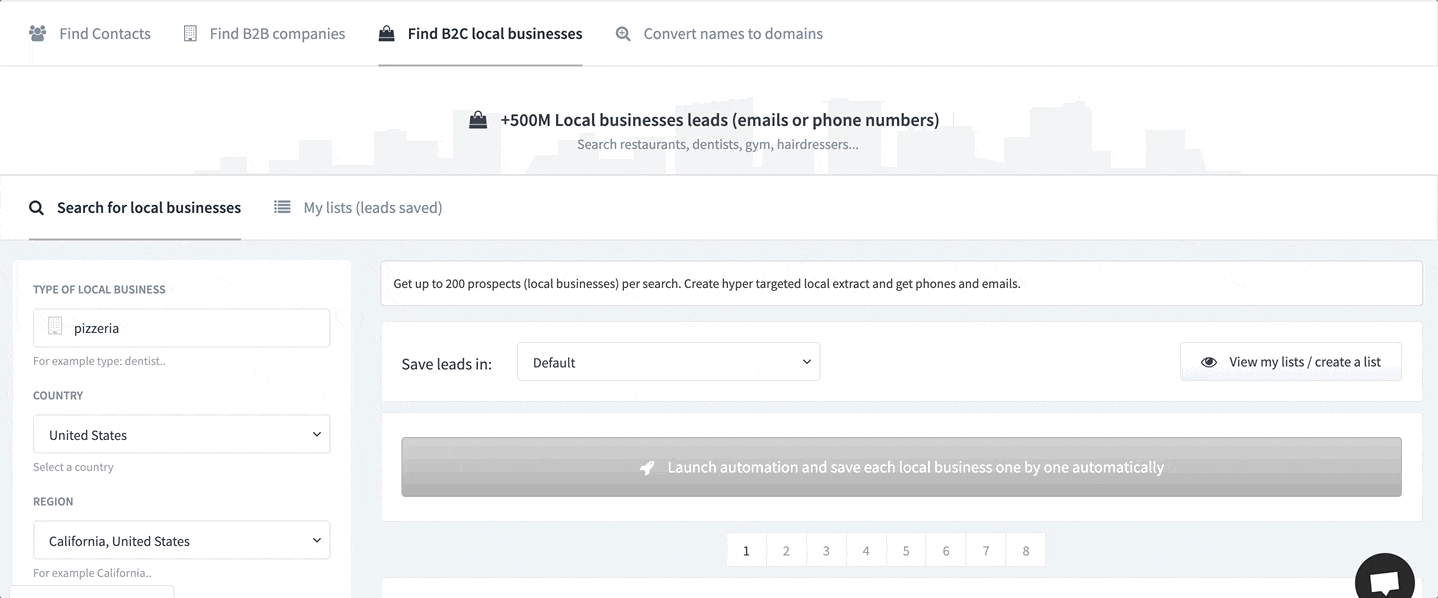 • Find B2C local businesses with their emails
